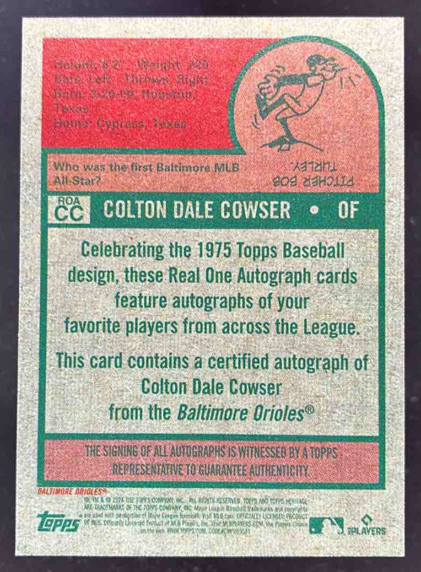 2024 Topps Heritage Real One Autographs #ROA-CC Colton Cowser RC Auto