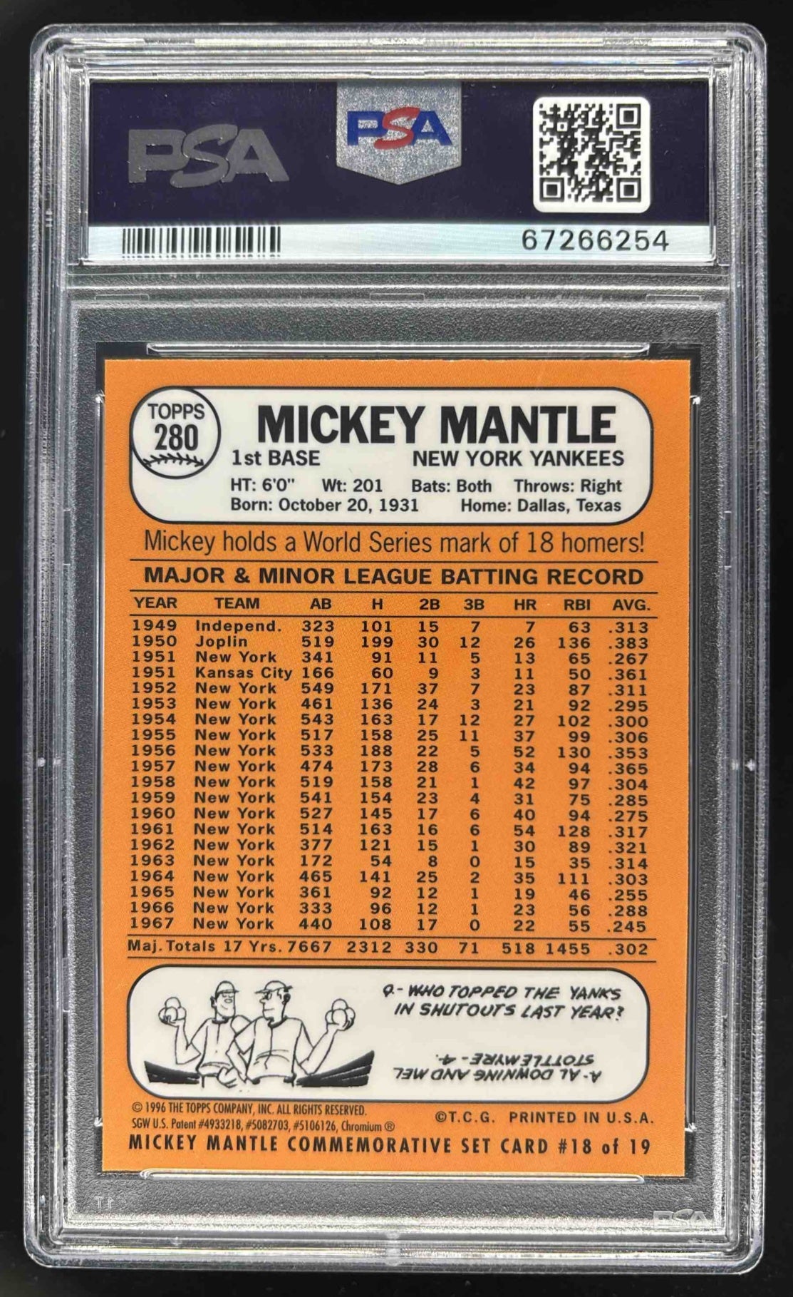 1996 Topps Mickey Mantle Commemorative Reprints Finest #18 Mickey Mantle PSA 8