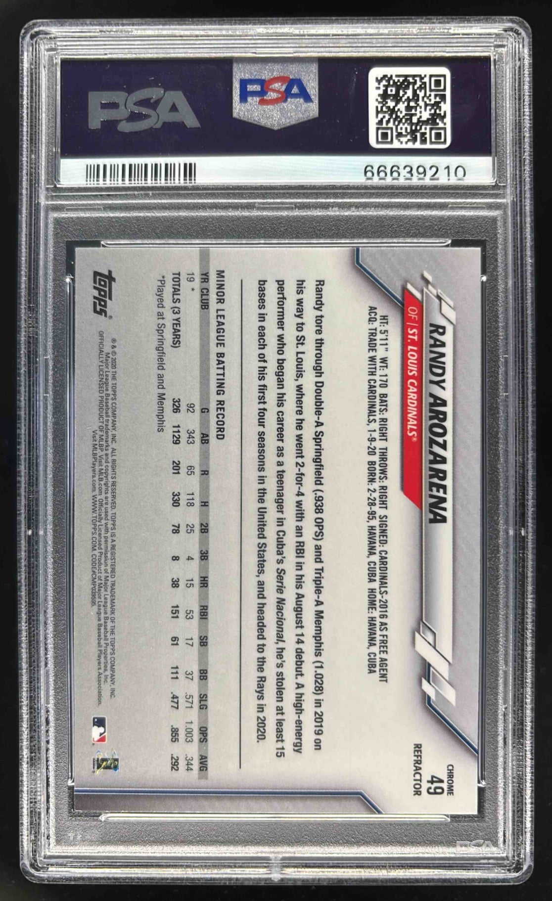 2020 Topps Chrome Sepia Refractor #49 Randy Arozarena RC PSA 10