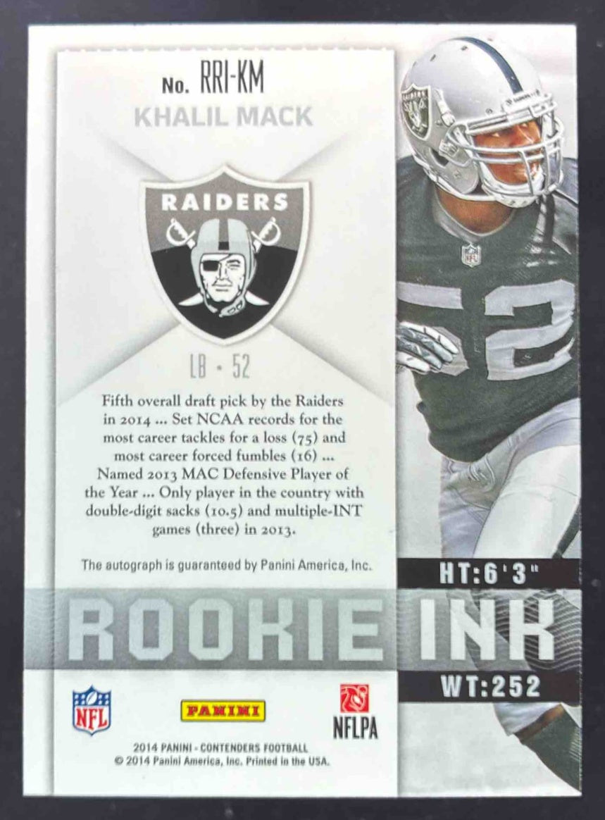 2014 Panini Contenders Rookie Ink Rookie Premiere #RRI-KM Khalil Mack RC Auto