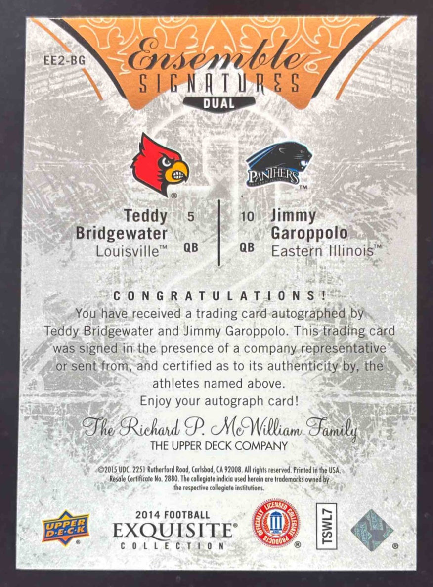 2014 Exquisite Collection Ensemble Duals Jimmy Garoppolo Bridgewater Auto /10
