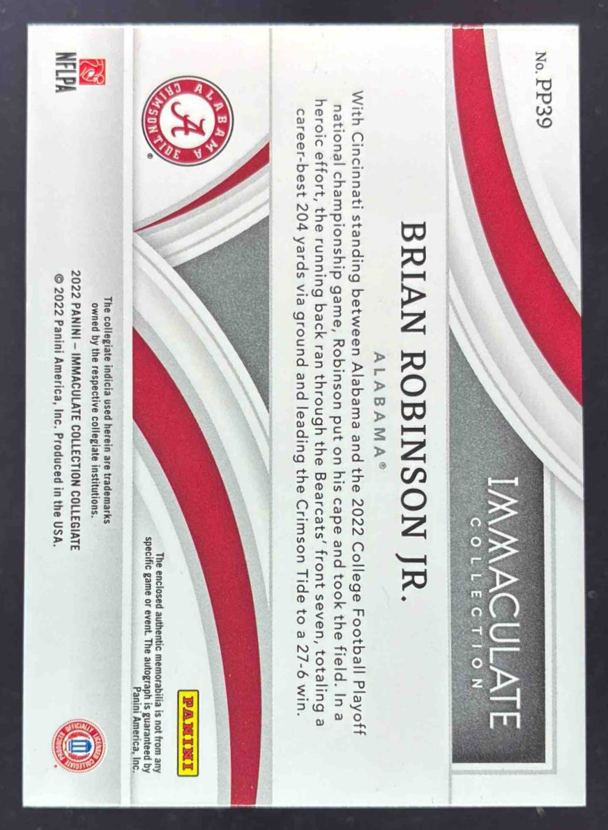 2022 Immaculate Collegiate Rookie Auto Purple #PP39 Brian Robinson Jr. RC /15