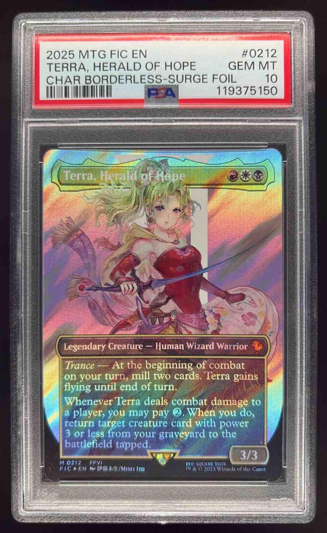 2025 Magic the Gathering Borderless Surge Foil #0212 Terra Herald of Hope PSA 10