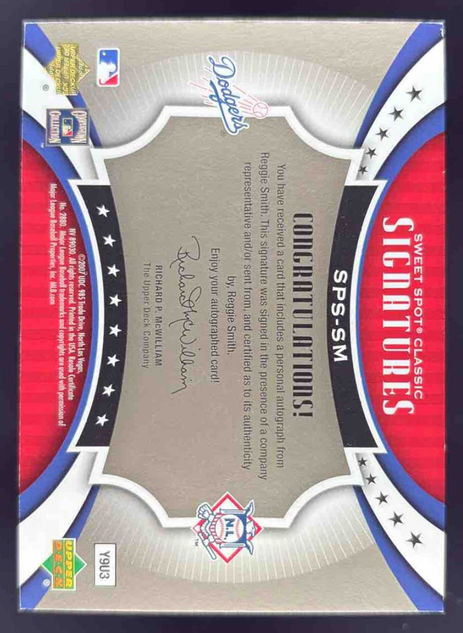 2007 Sweet Spot Classic Signatures Leather Gold Ink #SPSSM Reggie Smith Auto /50