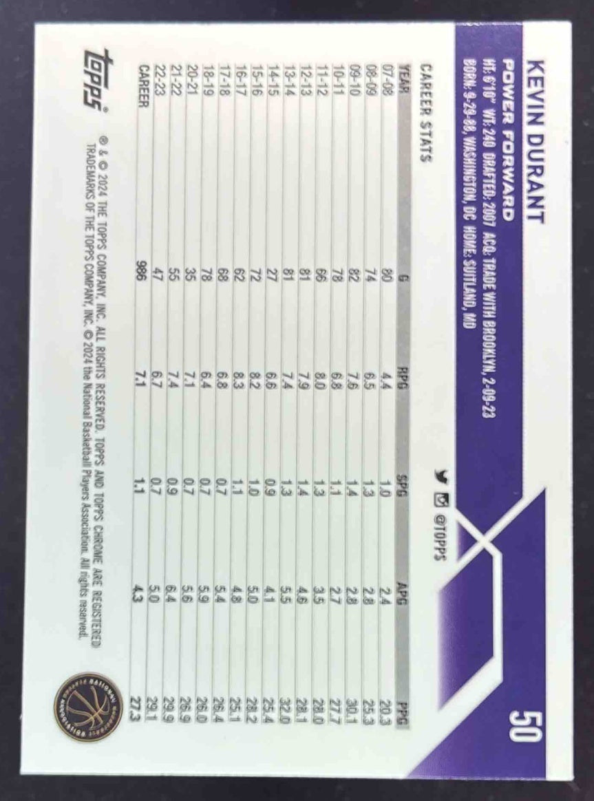 2023-24 Topps Chrome Gold Refractor #50 Kevin Durant /50
