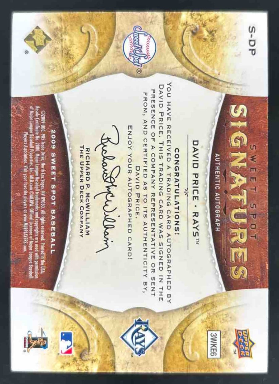 2009 Sweet Spot Signatures Red Stitch Blue Ink #S-DP David Price RC Auto /50