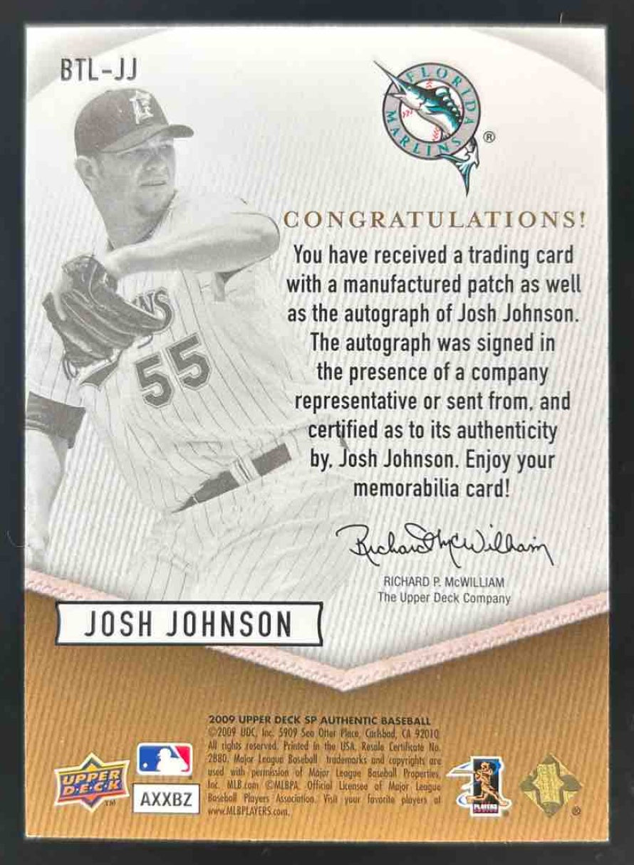 2009 SP Authentic By The Letter Signatures #BTL-JJo Josh Johnson Auto /27