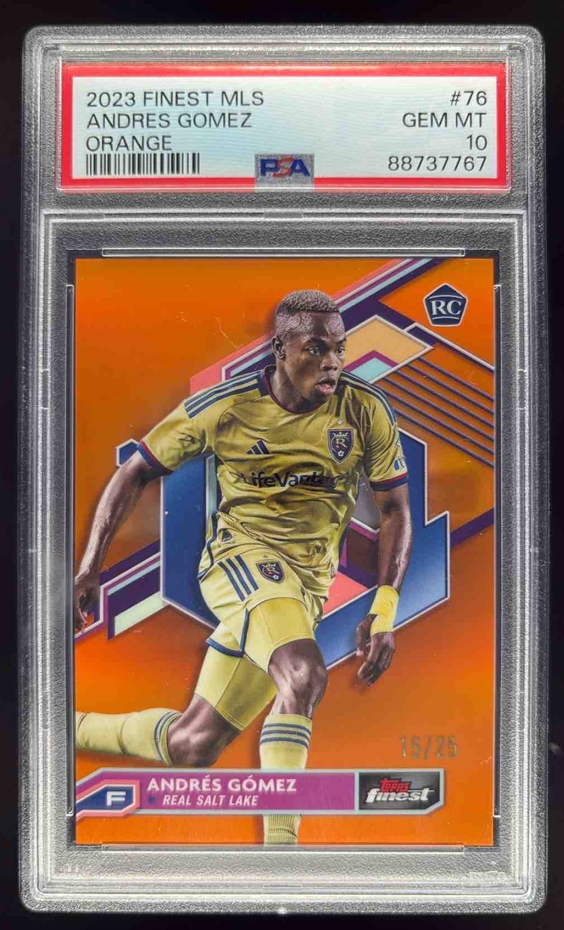 2023 Topps Finest MLS Orange Refractor #76 Andres Gomez RC /25 PSA 10