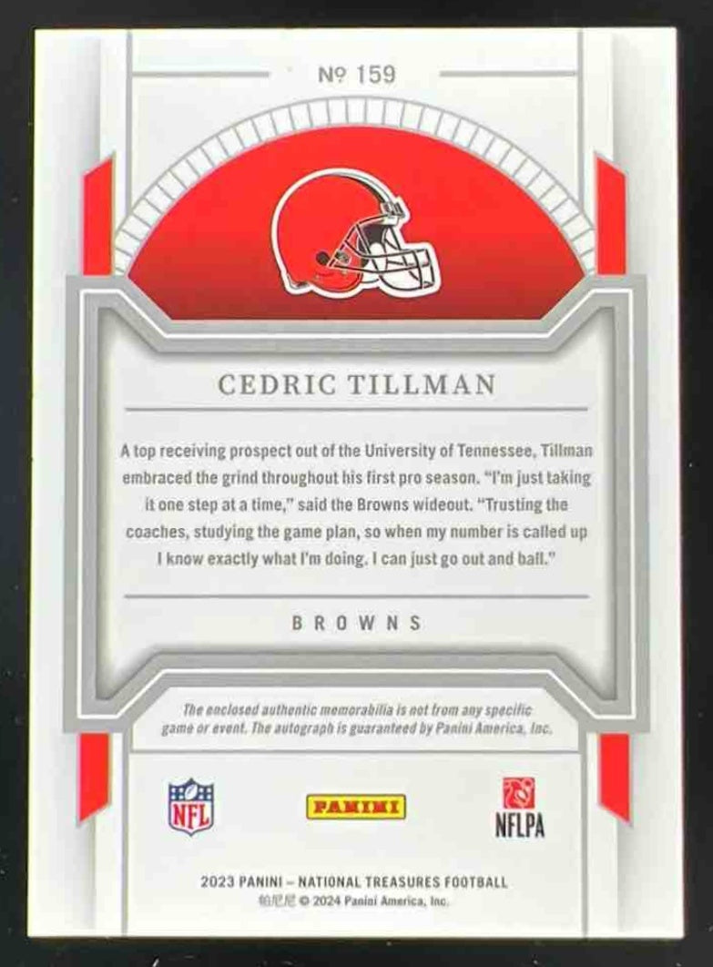 2023 National Treasures Midnight #159 Cedric Tillman Autograph RC Auto /20