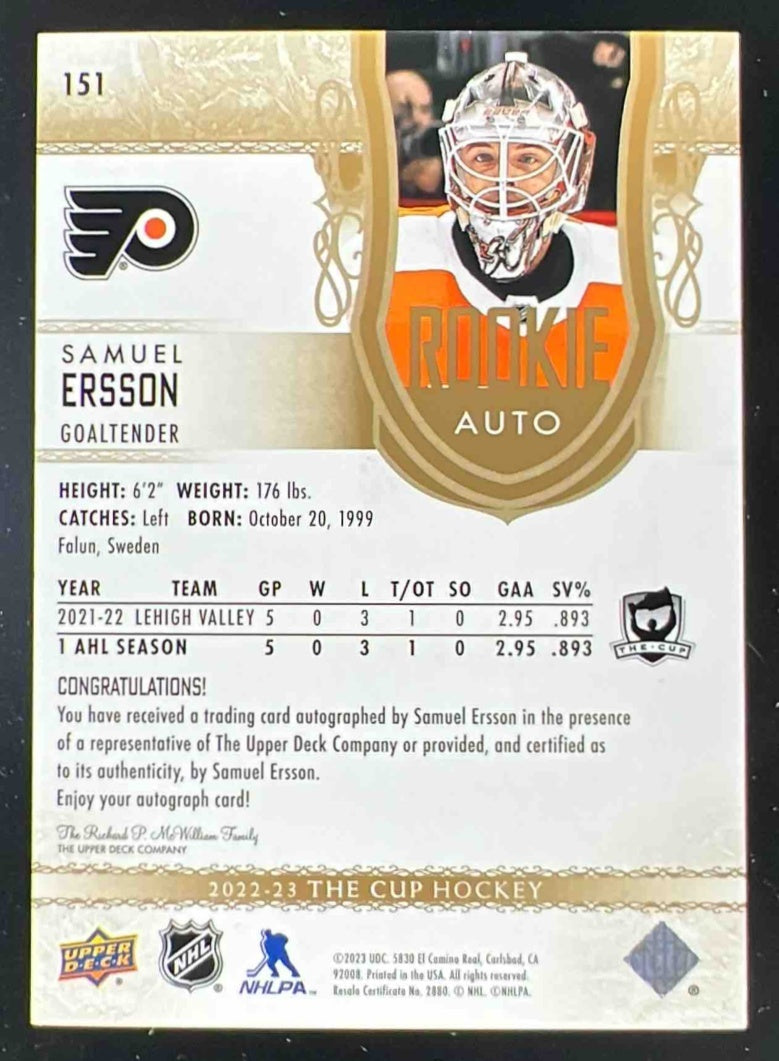 2023-24 The Cup Gold Spectrum Foil #151 Samuel Ersson Autograph Auto /36