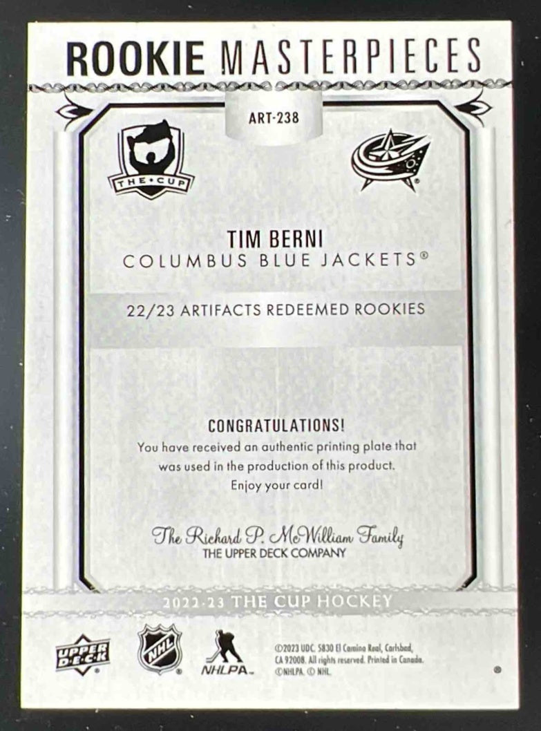 2022-23 The Cup Rookie Masterpieces Printing Plate Magenta Tim Berni 1/1