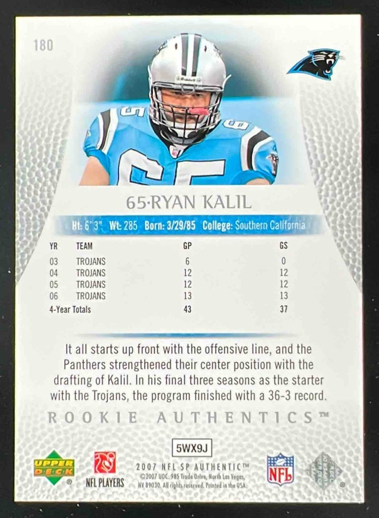 2007 SP Authentic #180 Ryan Kalil RC /999