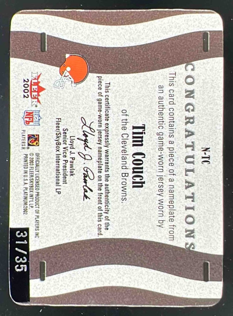 2002 Fleer Platinum Nameplates #N-TC Tim Couch /35