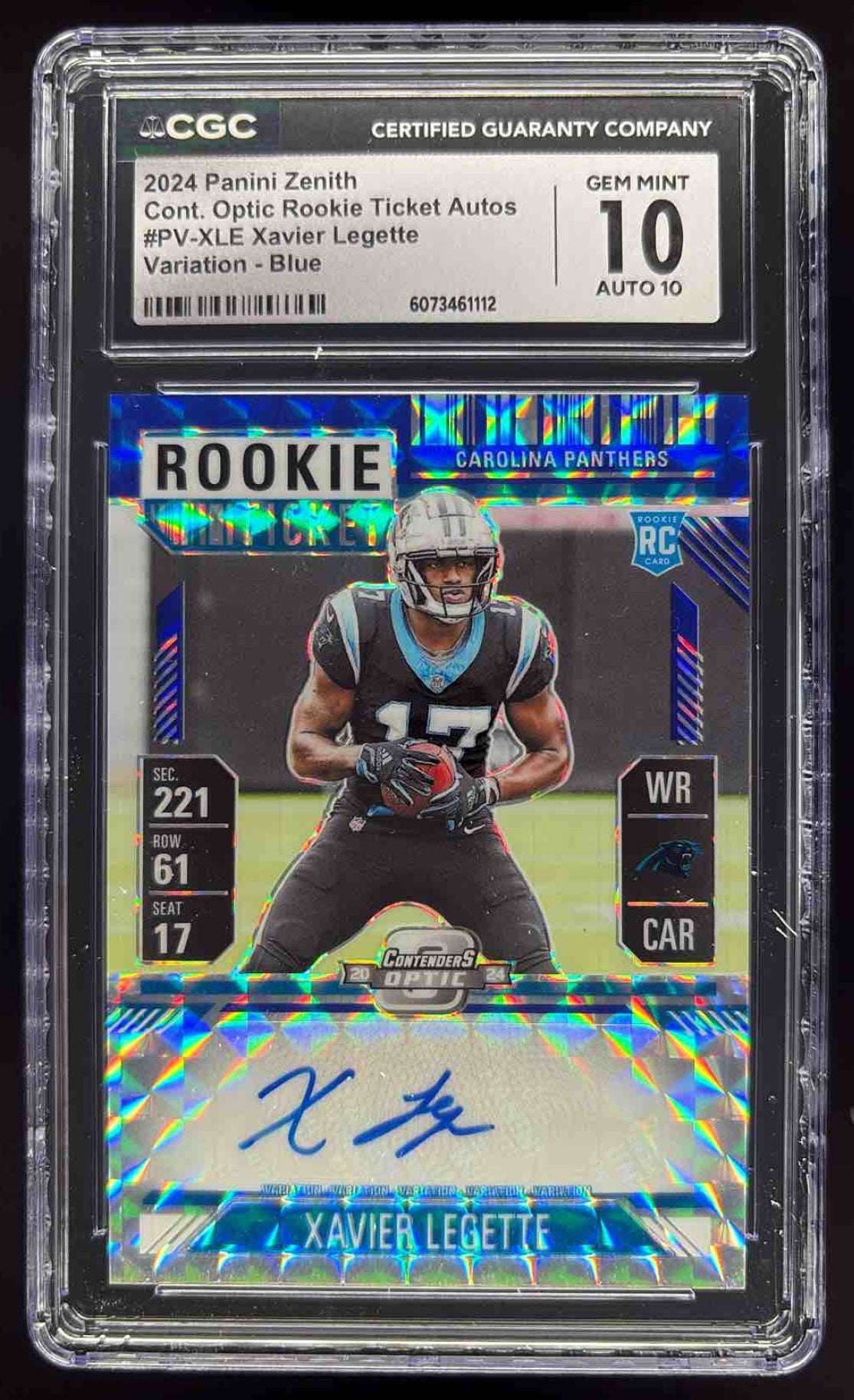 2024 Panini Zenith Variation Blue Optic Auto Ticket Xavier Legette RC /24 CGC 10
