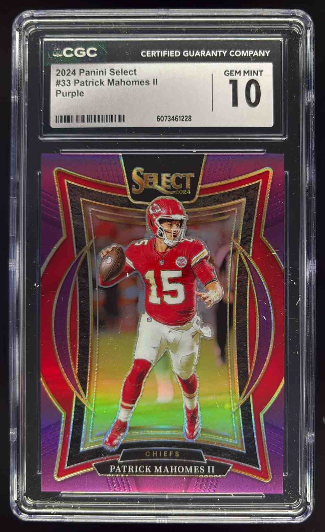 2024 Panini Select Concourse Purple Prizm #33 Patrick Mahomes II /75 CGC 10