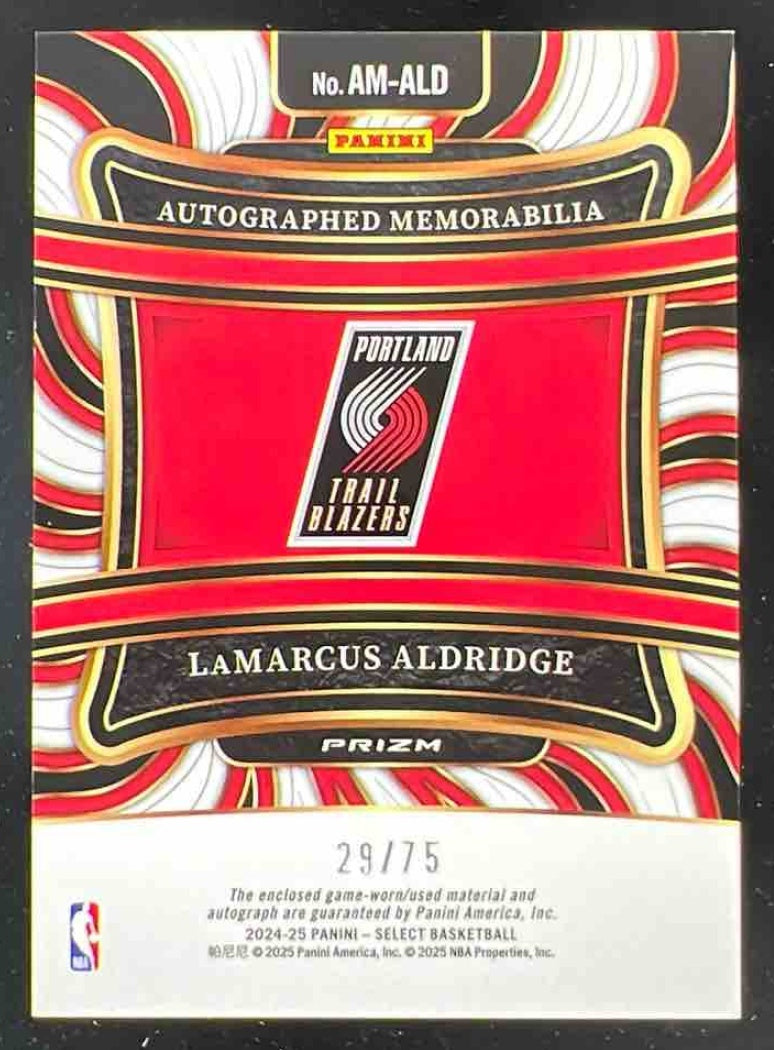 2024-25 Panini Select Autographed Memorabilia #29 LaMarcus Aldridge Auto /75