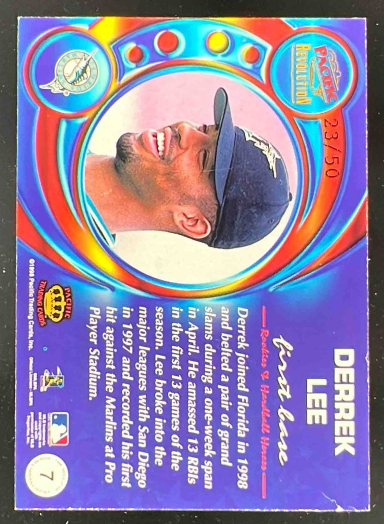 1998 Pacific Revolution Rookies and Hardball Heroes Gold #7 Derrek Lee /50