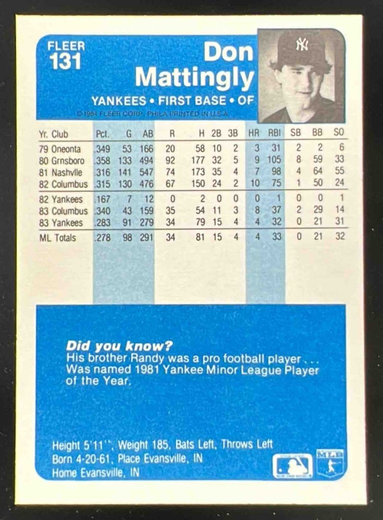 1984 Fleer #131 Don Mattingly RC
