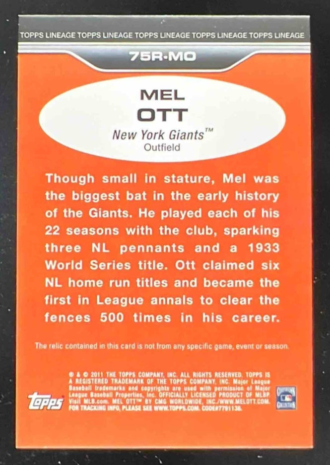 2011 Topps Lineage 1975 Mini Relics #75R-MO Mel Ott