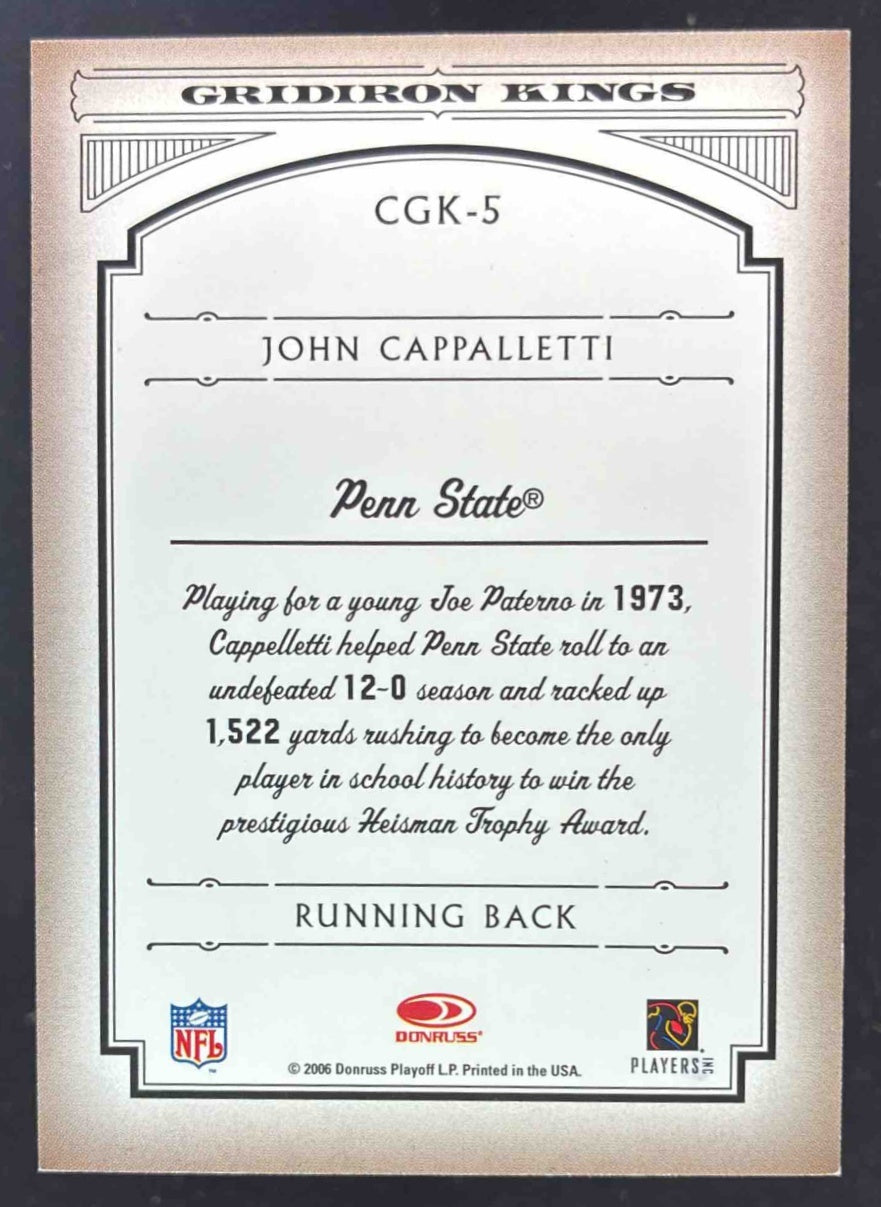 2006 Donruss Threads College Gridiron Kings Autograph John Cappelletti Auto