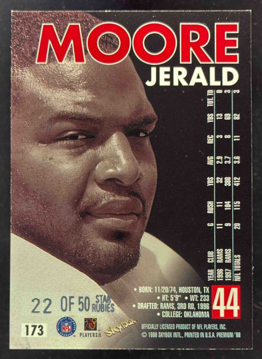 1998 Skybox Premium Star Rubies #173 Jerald Moore /50