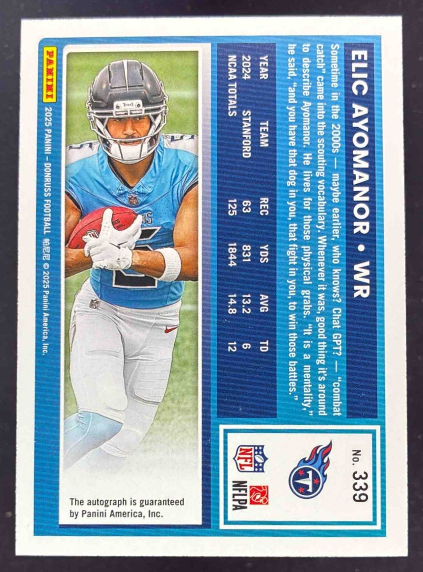 2025 Panini Donruss Rated Rookie Autographs #339 Elic Ayomanor RC Auto /199