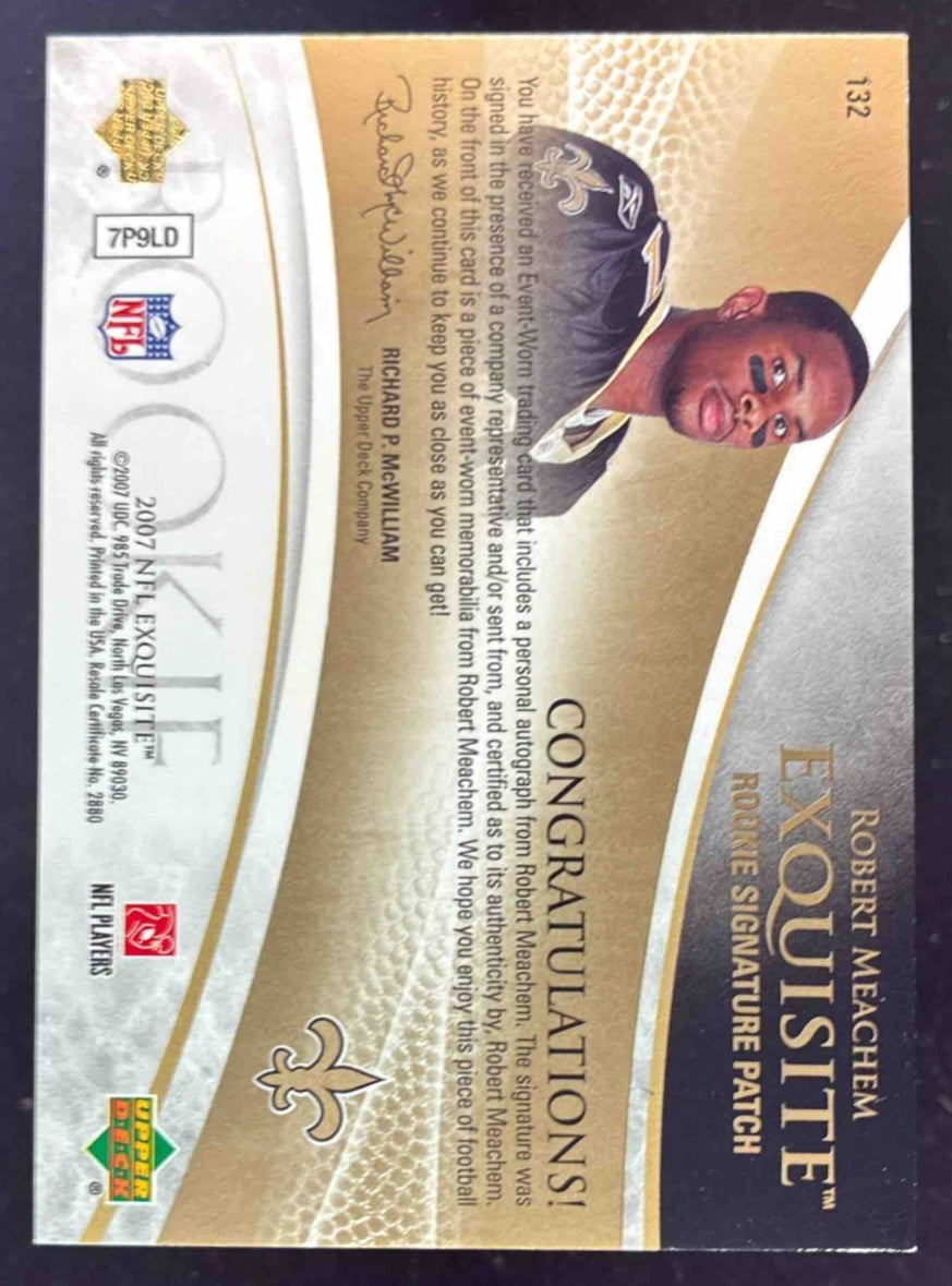 2007 Upper Deck Exquisite Collection Gold #132 Robert Meachem RC Auto /25
