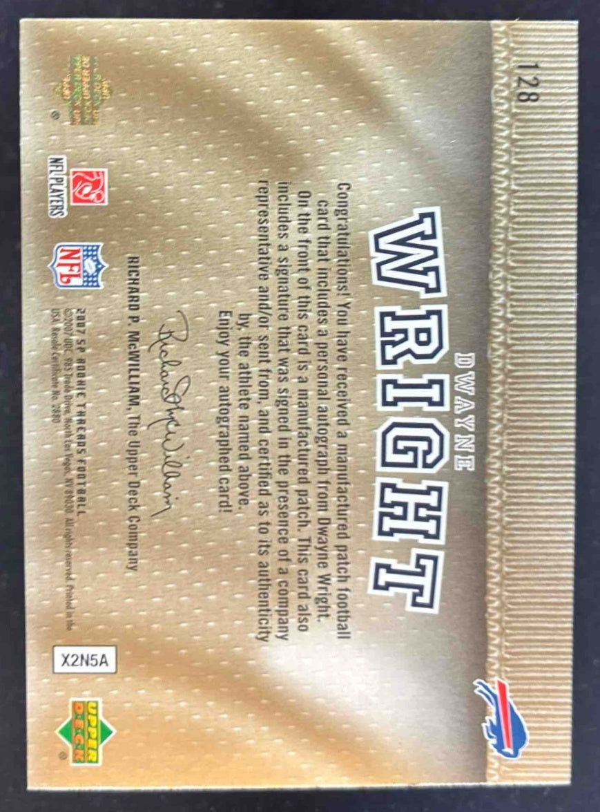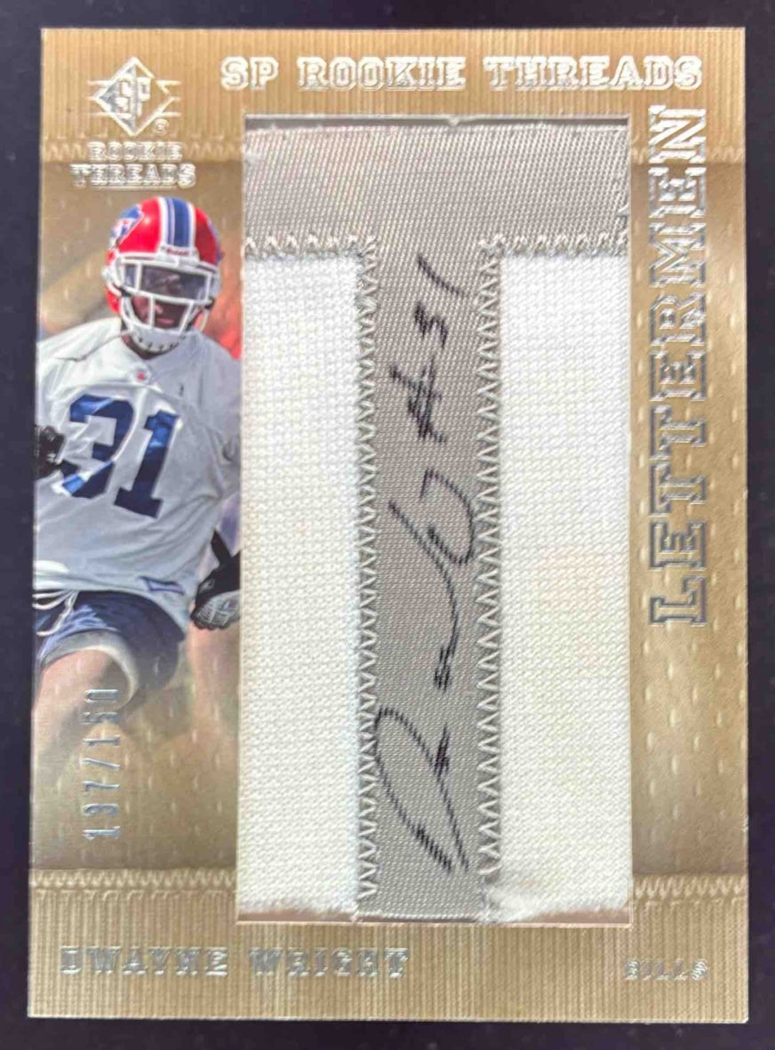2007 SP Rookie Threads Rookie Lettermen Silver #128a Dwayne Wright RC Auto /150
