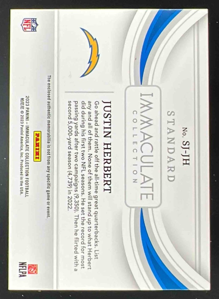 2023 Panini Immaculate Collection Standard Jerseys #SJ-JH Justin Herbert /49