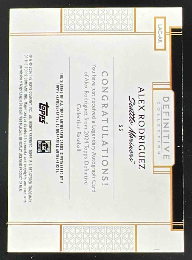2024 Topps Definitive Collection Legendary Collection Alex Rodriguez Auto /25