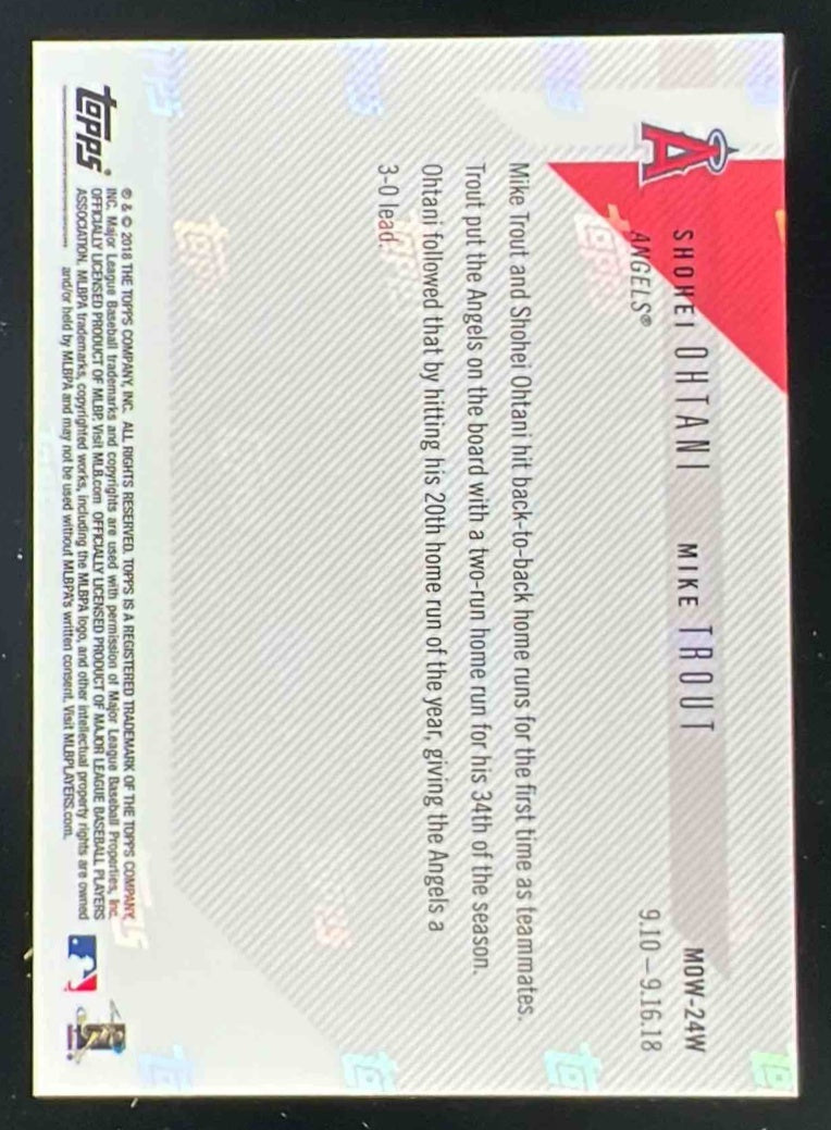 2018 Topps Now Moment of the Week Winner Shohei Ohtani Mike Trout