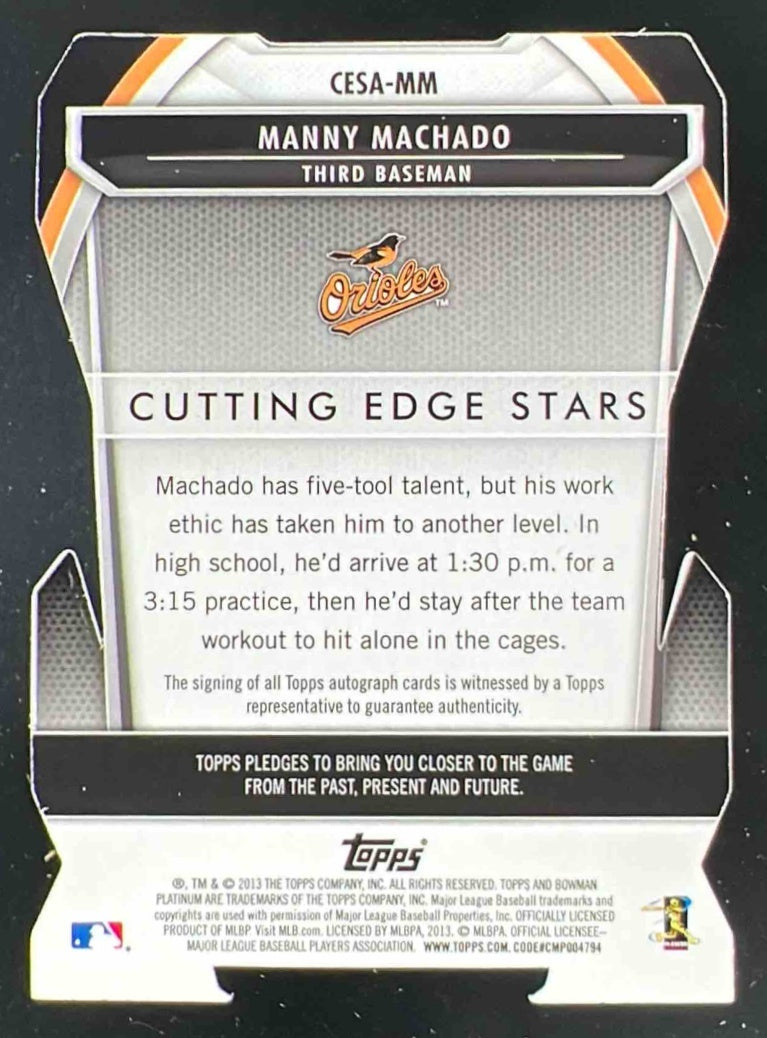 2013 Bowman Platinum Cutting Edge Stars Autographs Manny Machado RC Auto /25