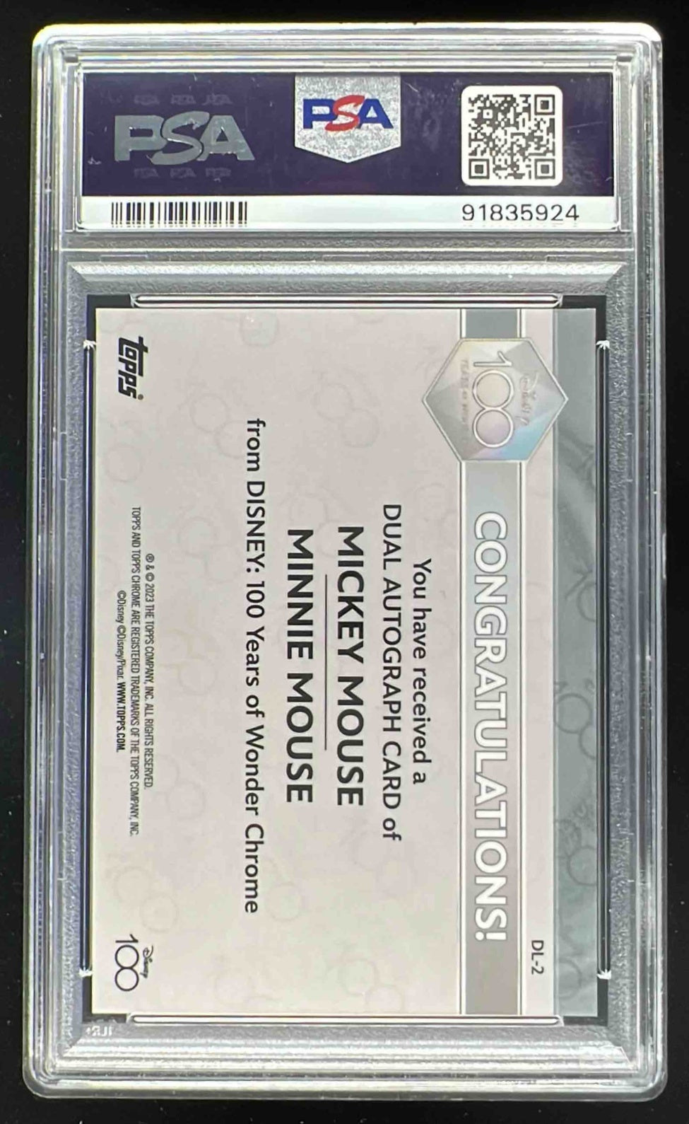 2023 Disney100 Chrome Dual Auto Blue Wave Micky & Minnie /23 PSA 9