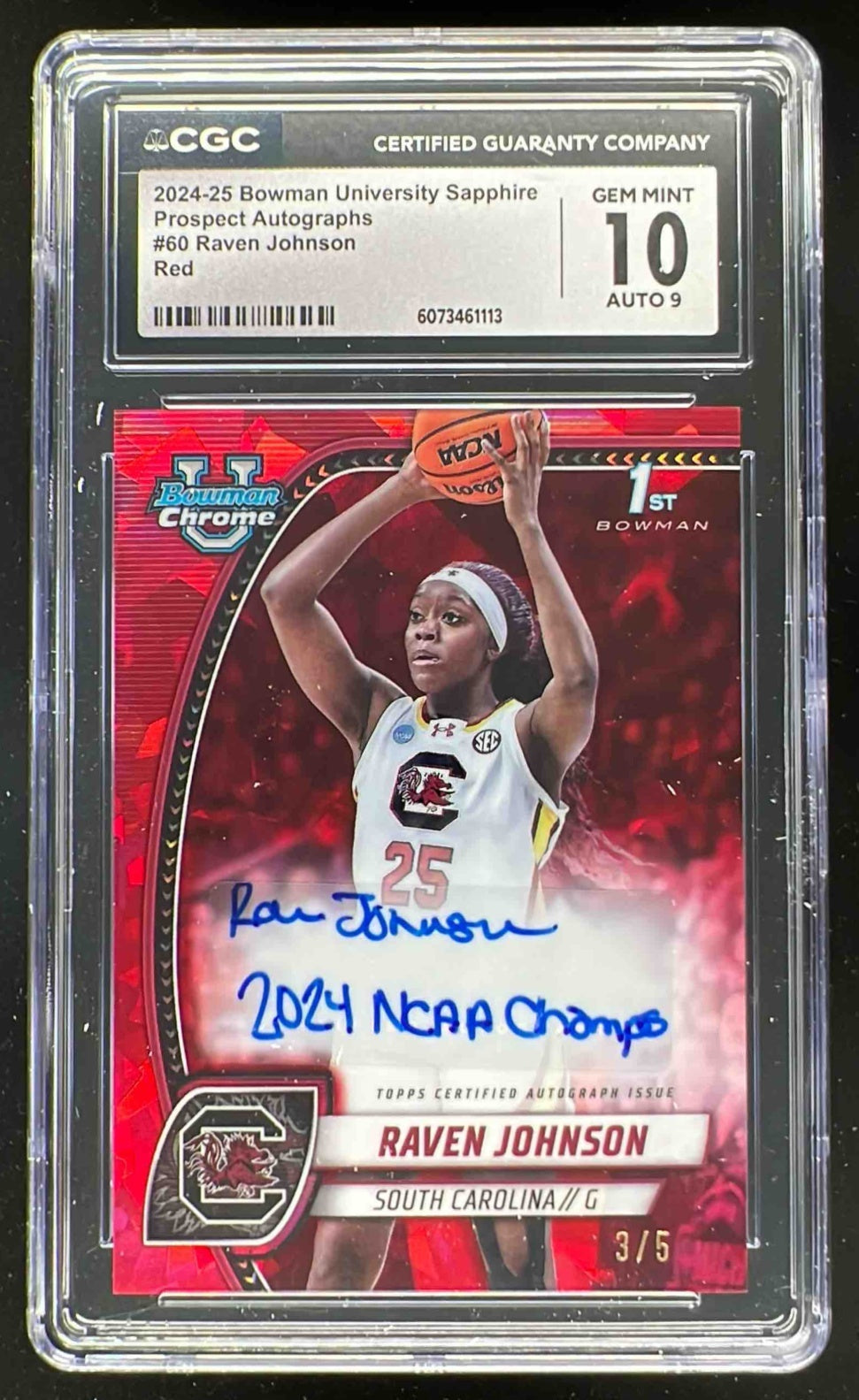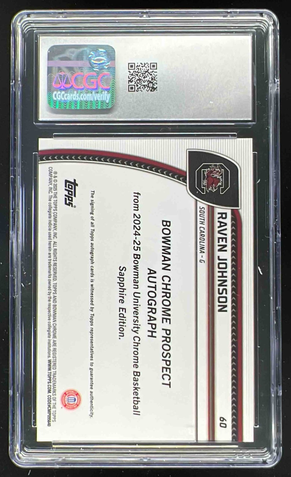 2024-25 Bowman University Chrome Sapphire Red #60 Raven Johnson Auto /5 CGC 10