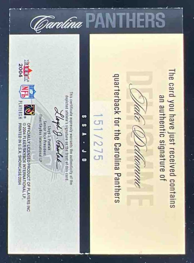 2004 Fleer Showcase Sweet Sigs Silver #SSA-JD1 Jake Delhomme Auto /275