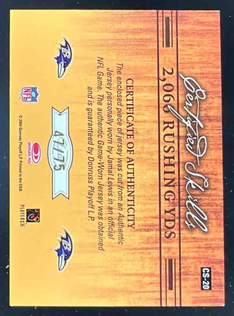 2004 Leaf Certified Materials Certified Jersey Position #CS-20 Jamal Lewis /75