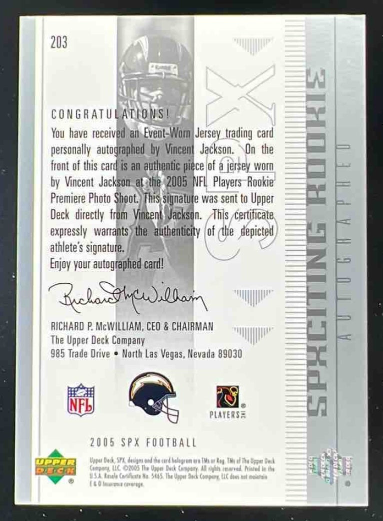 2005 SPx #203 Vincent Jackson RC Auto /1275