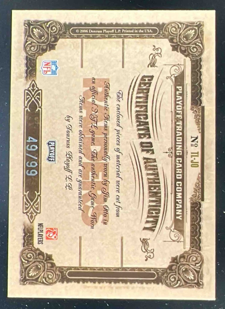 2006 Playoff National Treasures Timeline Material NFL #TL-JO Jim Otto /99