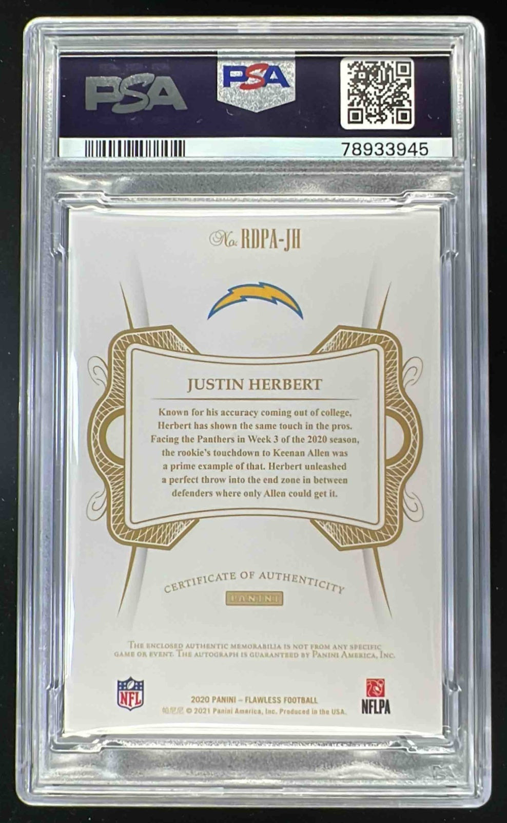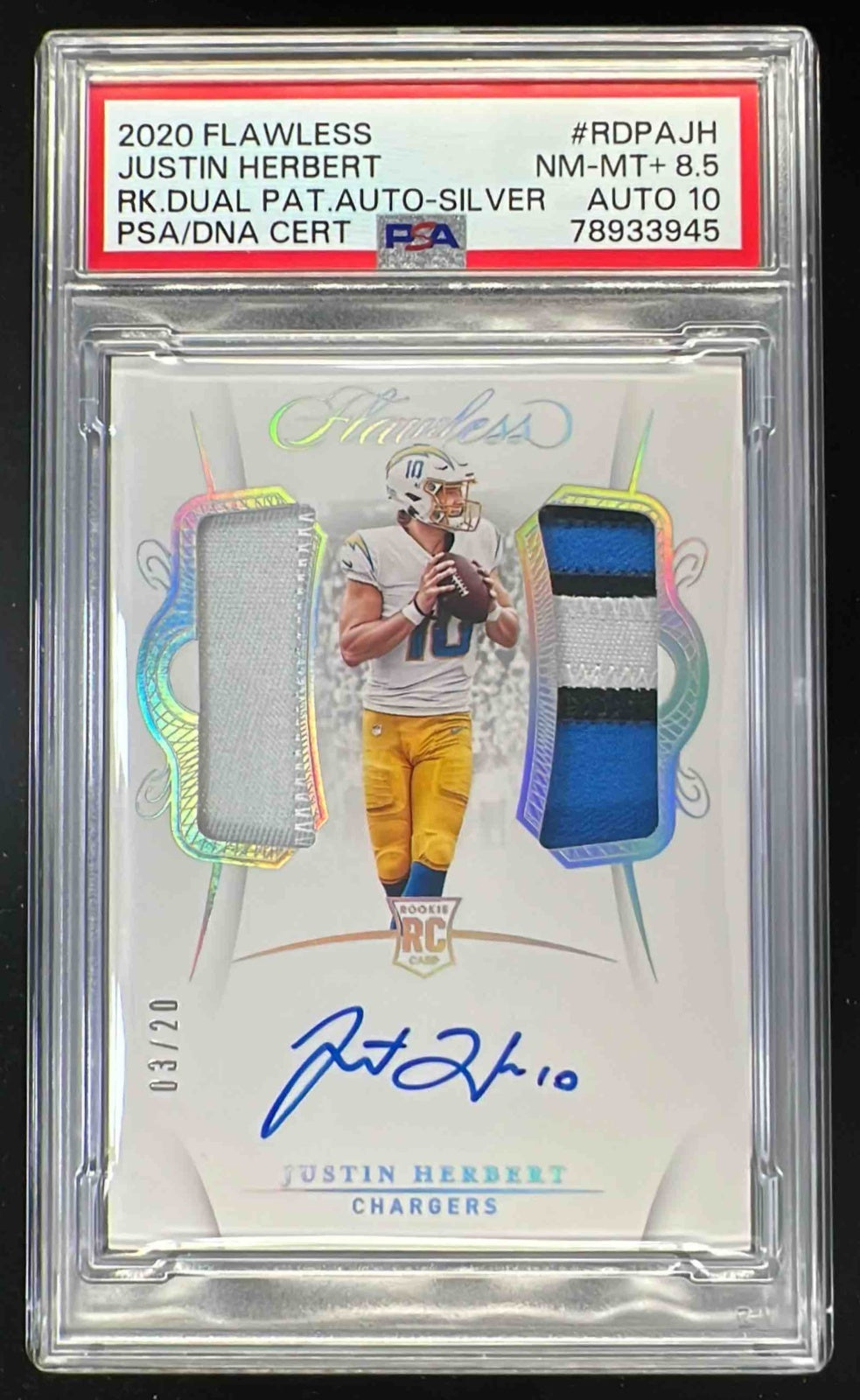2020 Flawless Rookie Dual Patch Silver #JH Justin Herbert RC Auto /20 PSA 8.5