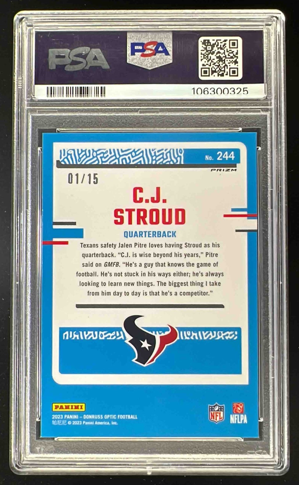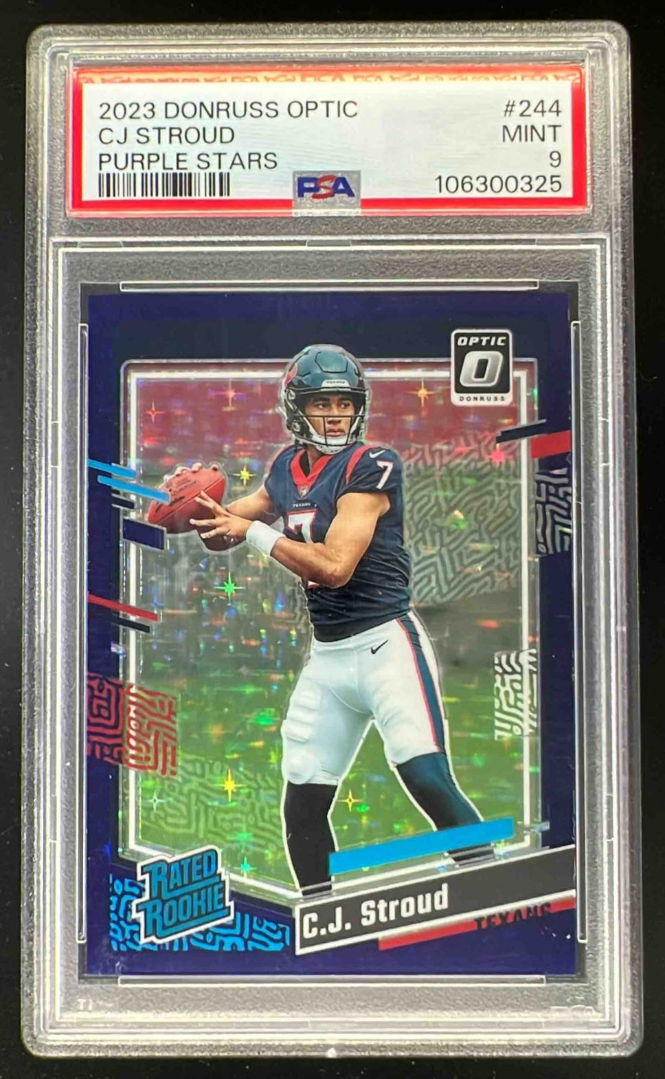 2023 Donruss Optic Purple Stars Prizm #244 C.J. Stroud RC Rookie /15 PSA 9