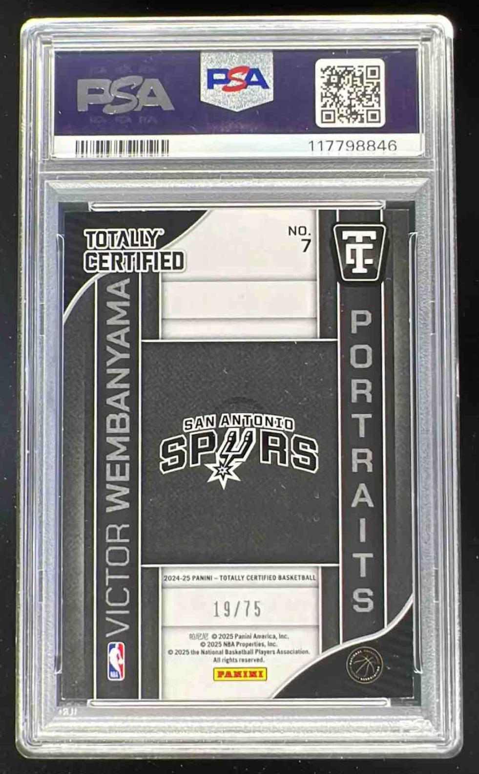 2024-25 Totally Certified Portraits Silver Mirror Victor Wembanyama /75 PSA 7