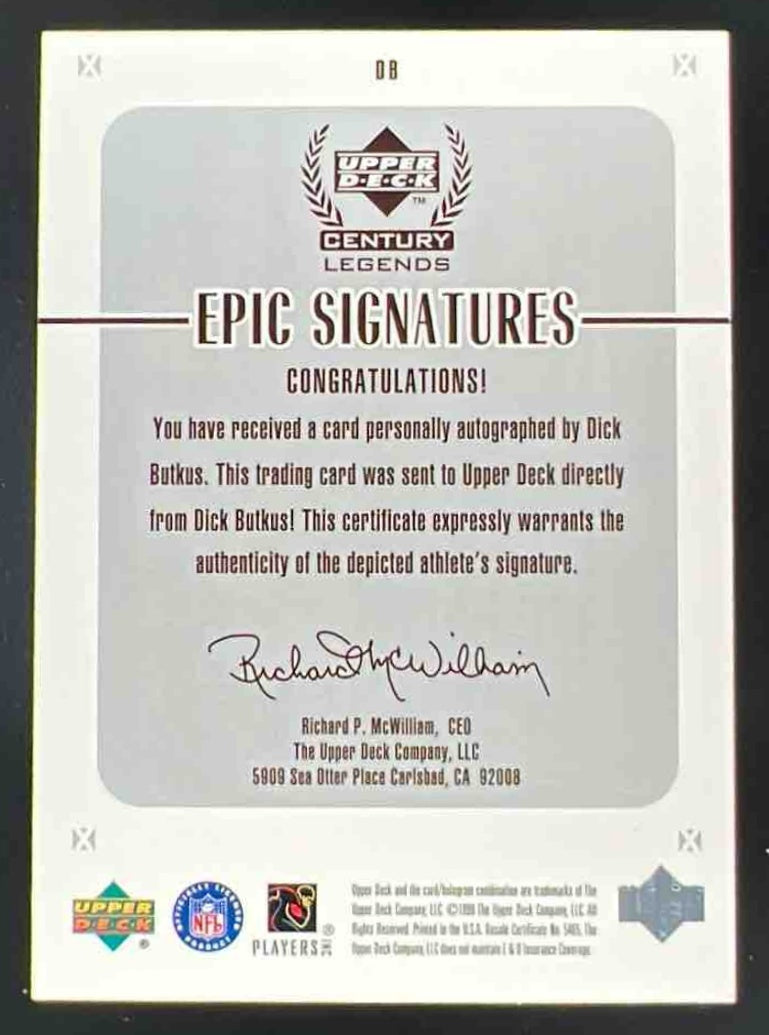 1999 Upper Deck Century Legends Epic Signatures #DB Dick Butkus Auto