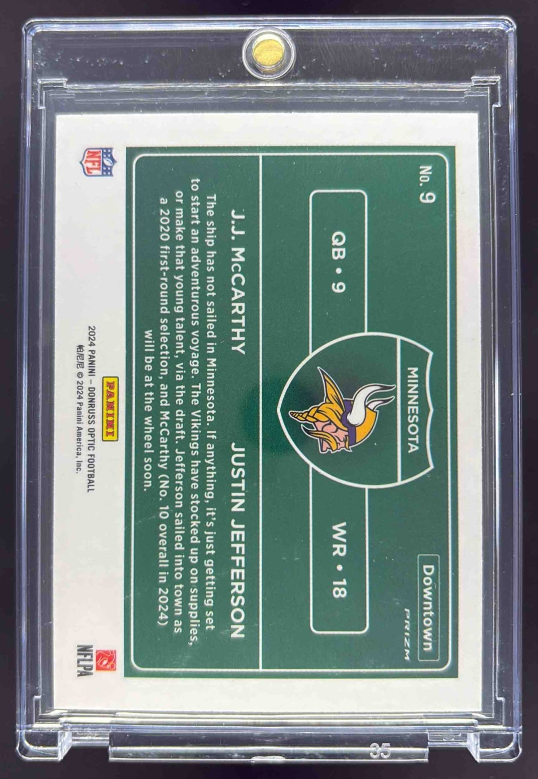 2024 Panini Donruss Optic Downtown Duos #9 J.J. McCarthy Justin Jefferson RC SSP