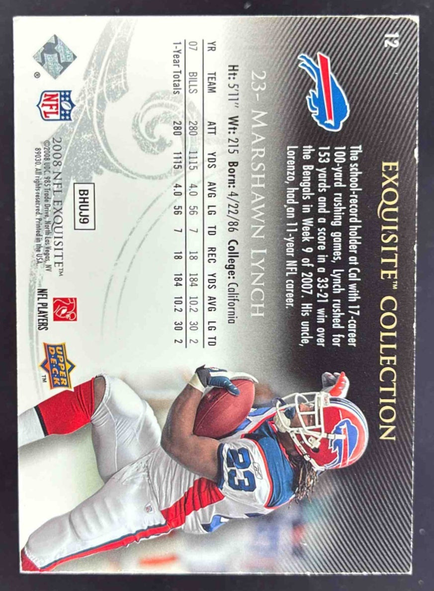 2008 Upper Deck Exquisite Collection #12 Marshawn Lynch /75