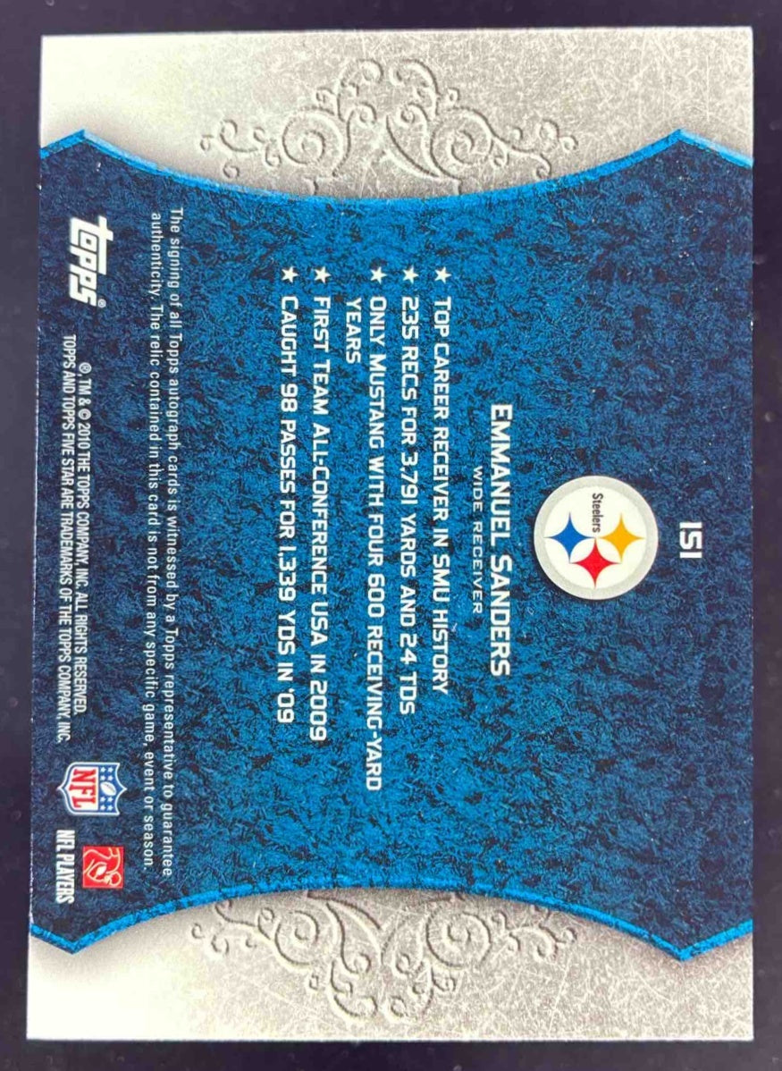 2010 Topps Five Star Rookie Patch Gold #151 Emmanuel Sanders RC Auto /40