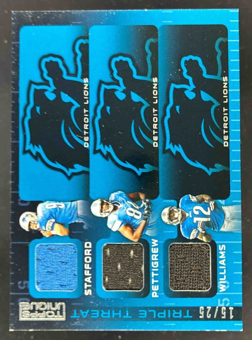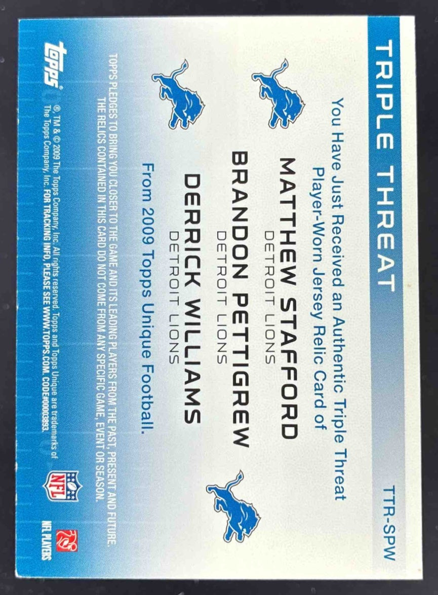 2009 Topps Unique Triple Threat Jersey Matthew Stafford Pettigrew Williams /25