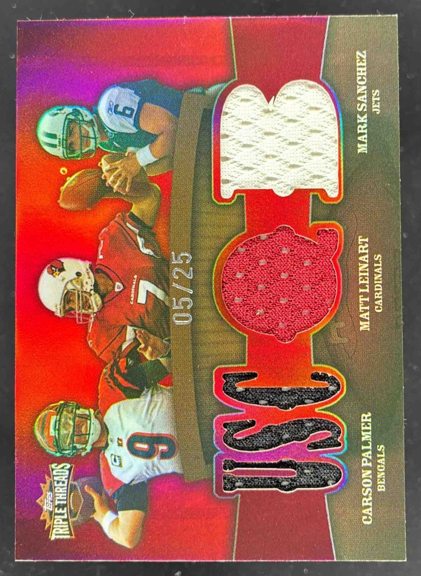 2009 Triple Threads Relic Combos Red Carson Palmer Matt Leinart Mark Sanchez /25