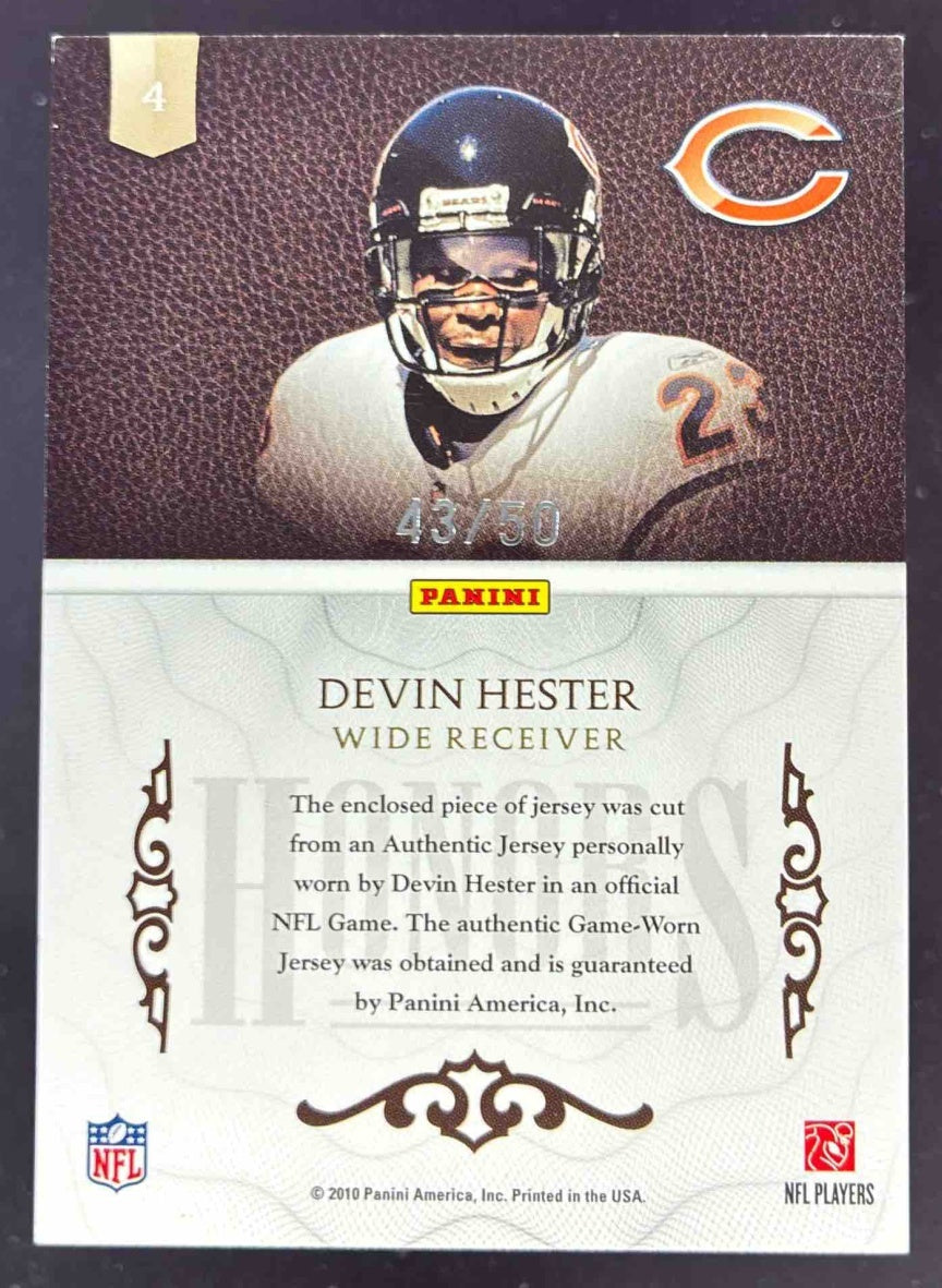 2010 Panini Plates & Patches Honors Materials Prime #4 Devin Hester /50