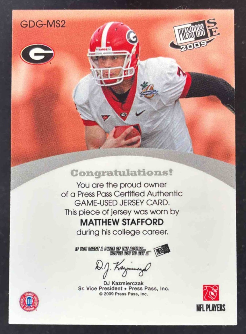 2009 Press Pass SE Game Day Gear Jerseys Silver #GDG-MS2 Matthew Stafford MEM
