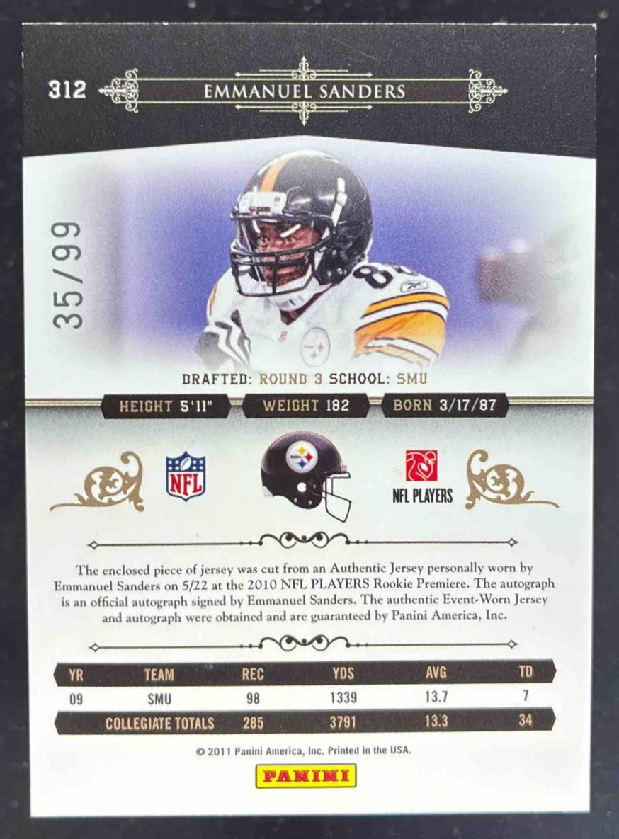 2010 Playoff National Treasures #312 Emmanuel Sanders Autograph RC Auto /99